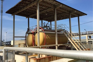 鍋爐排出的煙氣先經(jīng)過預(yù)除塵器,通過脫硫塔底部布風(fēng)裝置水平進入塔內(nèi),折向上方經(jīng)過文丘里管段使氣流加速,托起上方吸收反應(yīng)段內(nèi)的“床層”,將一定量的消石灰和水在文丘里管段的上方加入吸收反應(yīng)段內(nèi),在脫硫塔吸收反應(yīng)段“床...